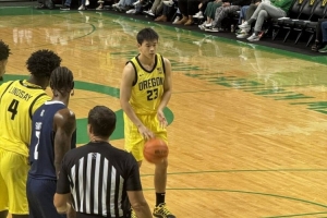 在上半场的比赛中,林葳代表俄勒冈大学替补登场6分钟,3投0中,三分2中0、罚球2罚1中,拿到1分1犯规,没有出现失误。