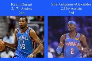本场比赛赛前,亚历山大在雷霆队的总助攻数为2169次,杜兰特为2171次(不包括超音速时期)。本场比赛,亚历山大大概率将会过杜兰特,成为雷霆队史助攻第二多的球员。