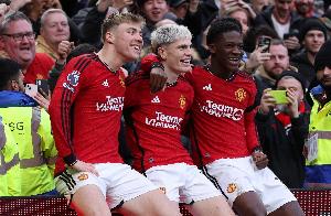 2024年2月曼联3-0战胜西汉姆联,比赛第49分钟加纳乔破门后,与霍伊伦、梅努一起坐到广告牌上庆祝,一度让人看到了曼联的未来。但仅仅一年半过去后,三人便可能在今夏一起离开球队,令人唏嘘。