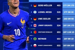 体育资讯11月15日讯 对阵乌克兰的世预赛,法国球星姆巴佩达成职业生涯400球里程碑。德国转会市场盘点了职业生涯400球俱乐部球员达成如此成就的场次和年龄,姆巴佩以26岁10个月24天成最年轻球员。