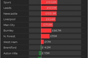 伯恩茅斯则实现了约7900万英镑的净收入,这主要得益于出售了扎巴尔尼、怀森、科尔克兹和瓦塔拉。