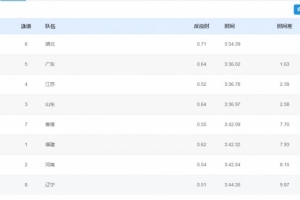 1 湖北 3:34.39