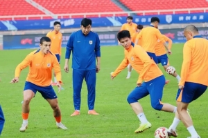 体育资讯11月21日讯 据望岳新闻报道,今天泰山队在武汉体育中心进行了中超末轮客战三镇的赛前适应场地训练,23名球员参加合练。依木兰和陈泽仕正常参加训练,两人有望在本场比赛上演本赛季中超首秀。