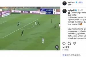 体育资讯11月23日讯 在个人社媒,海牛外援韦林顿晒出进球视频,疑似告别俱乐部。