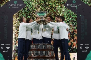 体育资讯11月24日讯 网球戴维斯杯决赛,贝雷蒂尼2-0战胜布斯塔,科博利2-1战胜穆纳尔,意大利队斩获冠军。