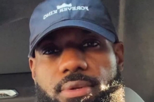 詹姆斯晒出了他在车内的自拍,他头戴一顶中国行期间发布的“Forever King(永远的王)”主题帽子,并配文道:“♾️👑”