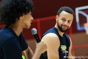 朱正晒出多张与库里合照,并用中英双语写道:“My master,My goat(我的老师,我的英雄)。”