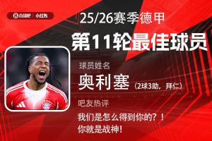 第十一轮评选结果结出炉,奥利塞2射3传超神表现,帮助拜仁让2追6击败弗莱堡,获得吧友超4.2万票支持。奥利塞毫无悬念当选【体育资讯X小红书德甲第11轮最佳球员】!