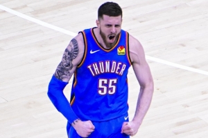 此役,雷霆内线哈尔滕施泰因出战28分钟,10投6中,罚球6中3,得到15分7篮板2助攻1抢断1盖帽的数据。华莱士得到9分3板2助2断,米切尔得到13分2板3助。