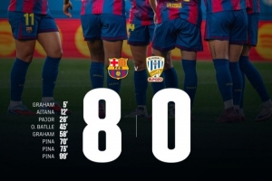 体育资讯8月31日讯 西甲女足首轮,巴萨女足8-0大胜升班马阿尔哈马,顺利取得开门红。克劳迪娅-皮纳上演帽子戏法,格雷厄姆-汉森梅开二度,此外艾塔娜、帕若尔和奥娜-巴特列也各有斩获。