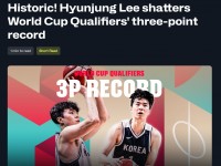 日前,李贤重在对阵中国男篮的比赛中砍下33分,带领球队在中国队的主场赢得世预赛第1场胜利。全场比赛他投中9记三分球,打破了世界杯资格赛阶段单场三分球最高纪录,成为历史第1人。