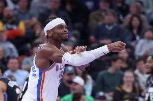 本场比赛,亚历山大出战34分钟,投篮21中13,三分6中5,罚球10中7,砍下38分3篮板4助攻1抢断,并且0失误。