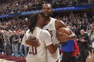 GIF-加兰变向突破助攻小莫布里虚晃后双手暴扣