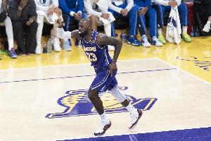 本场比赛最后时刻,詹姆斯助攻八村压哨三分绝杀,连续1297场上双纪录终结。