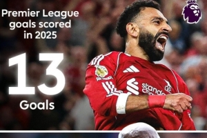 进入2025年,英超赛场上仅有萨拉赫(13球)比马特塔(11球)进球更多。